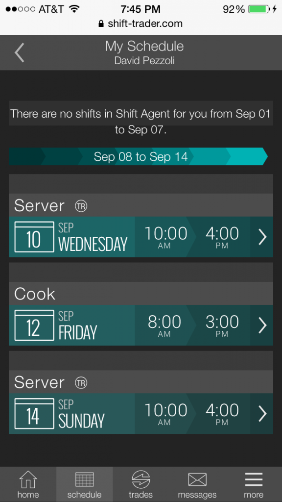 Your schedule is always filled with all of the shifts that your manager has published for you up to this point.